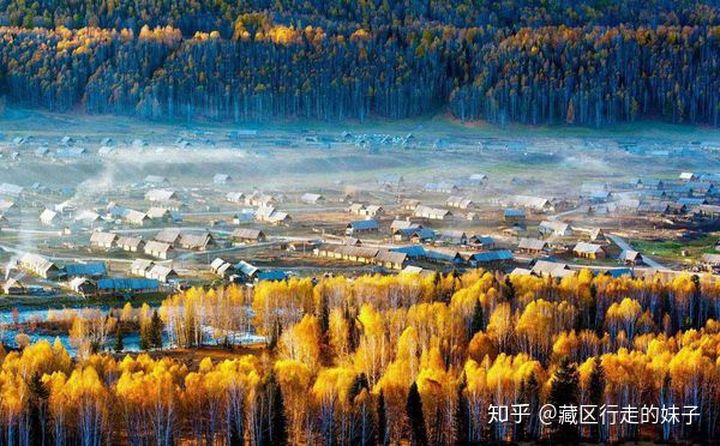 3、禾木村:是新疆布尔津县下辖的一座村庄,位于喀纳斯湖畔旁,素有“中国第一村”的美称,是图瓦人的集中生活居住地;禾木村房子全是用原木搭成的,风格独特、充满了原始的味道;禾木村最出名是万山红遍的醉人秋色,清晨炊烟在秋色中冉冉升起,形成一条像梦幻般的烟雾带,恍如仙境,站在附近的小山坡上俯视禾木村以及禾木河的全景:小桥流水、空谷幽灵、炊烟袅袅、这妙妙绝伦的古朴山村景致,像喀纳斯湖一样充满了神秘色彩。